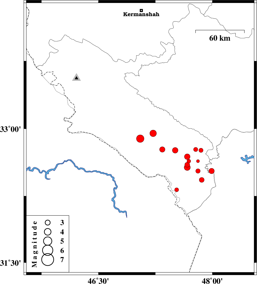 | 2015/01/05 | 02:37:49.2 | 06:07:49.2 | 32.95 | 47.22 | 17 | ML3.9 | Ilam Province, 21 km South of Darreh Shahr | ||