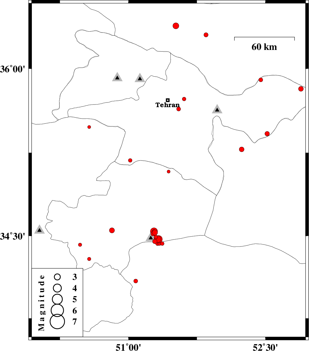 | 2014/12/29 | 08:10:51.4 | 11:40:51.4 | 35.64 | 51.55 | 15 | ML2 | Tehran Province, 11 km East of Rey | ||