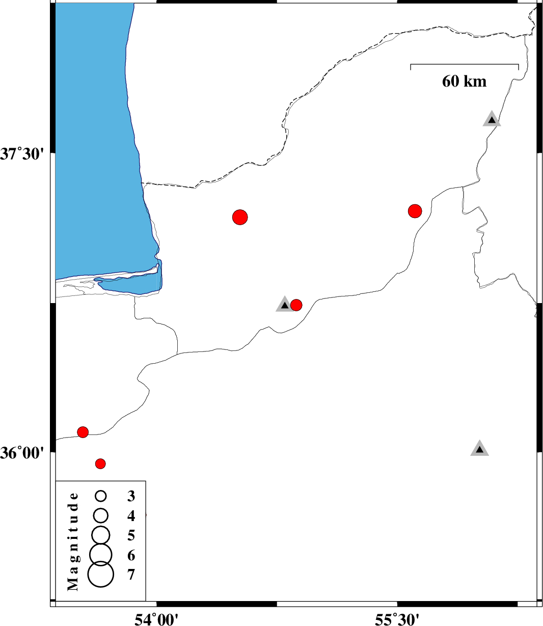 | 2014/12/30 | 07:29:54.5 | 10:59:54.5 | 37.21 | 55.61 | 14 | ML3.8 | Golestan Province, 20 km East of Minodasht | ||