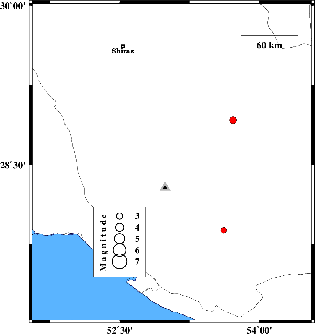 | 2015/01/21 | 13:14:52.7 | 16:44:52.7 | 29.76 | 52.32 | 6 | ML3.3 | Fars Province, 25 km North-West of Shiraz | ||