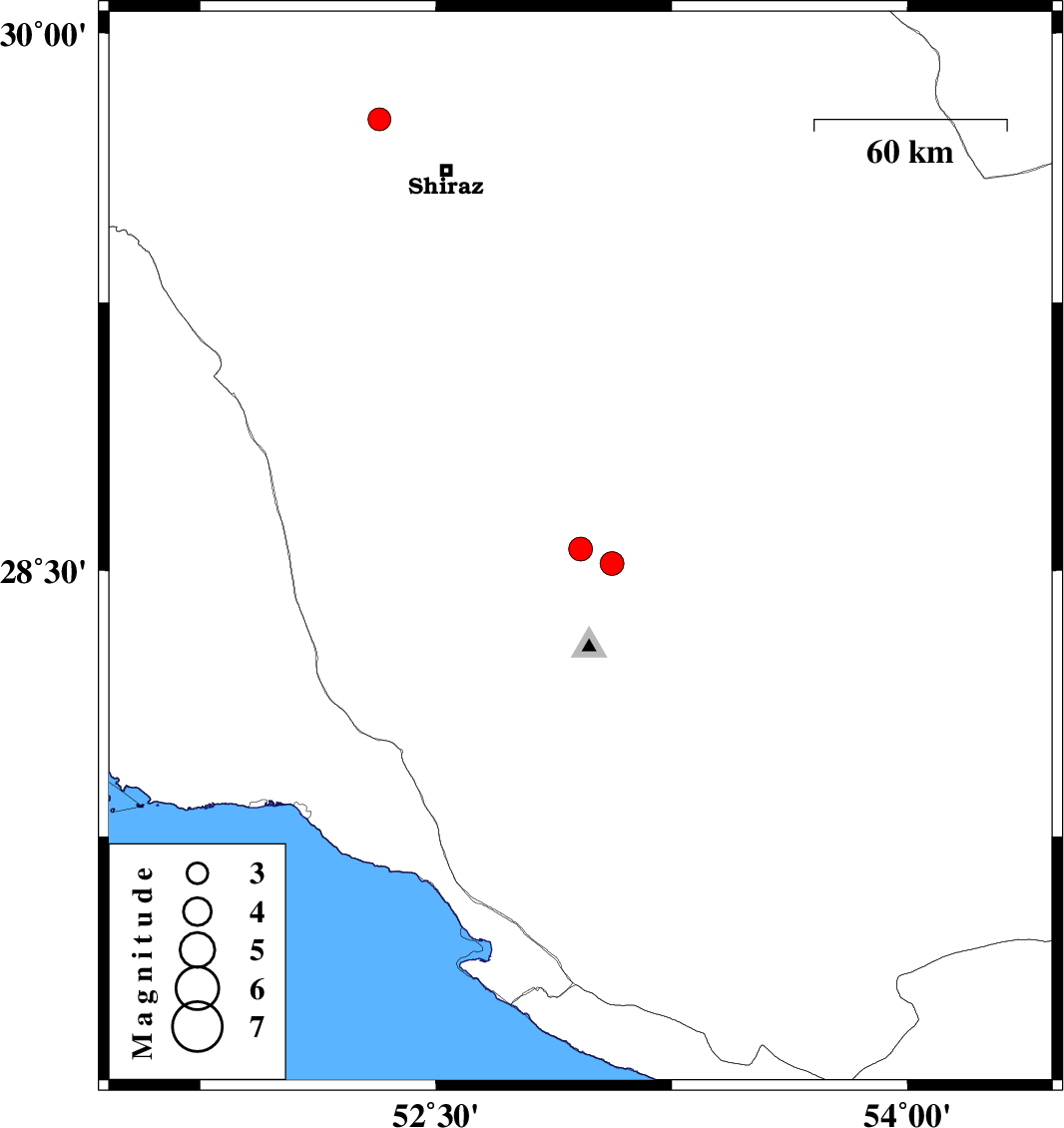 | 2015/01/21 | 13:14:52.7 | 16:44:52.7 | 29.76 | 52.32 | 6 | ML3.3 | Fars Province, 25 km North-West of Shiraz |