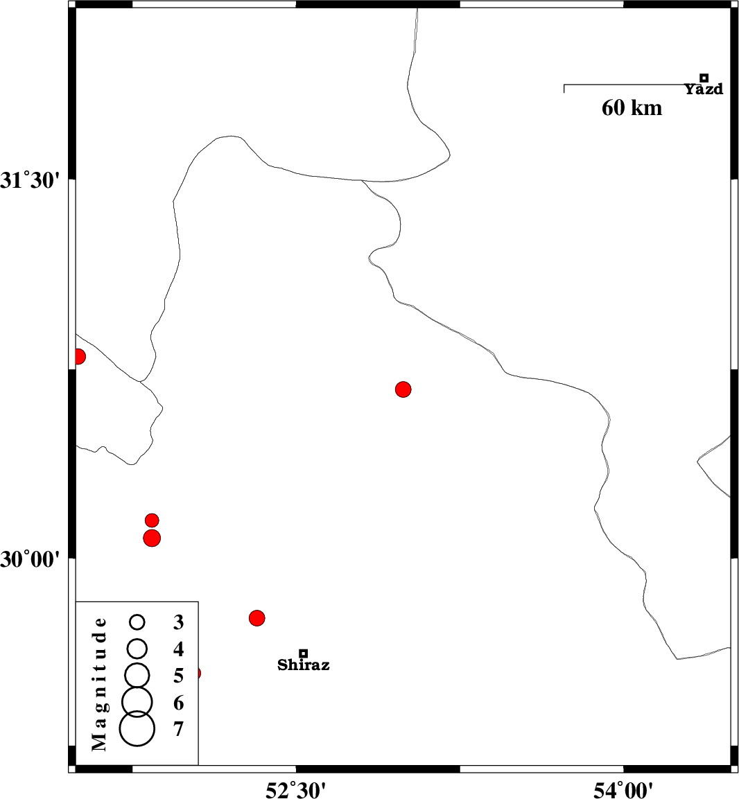 | 2015/01/21 | 13:14:52.7 | 16:44:52.7 | 29.76 | 52.32 | 6 | ML3.3 | Fars Province, 25 km North-West of Shiraz | ||