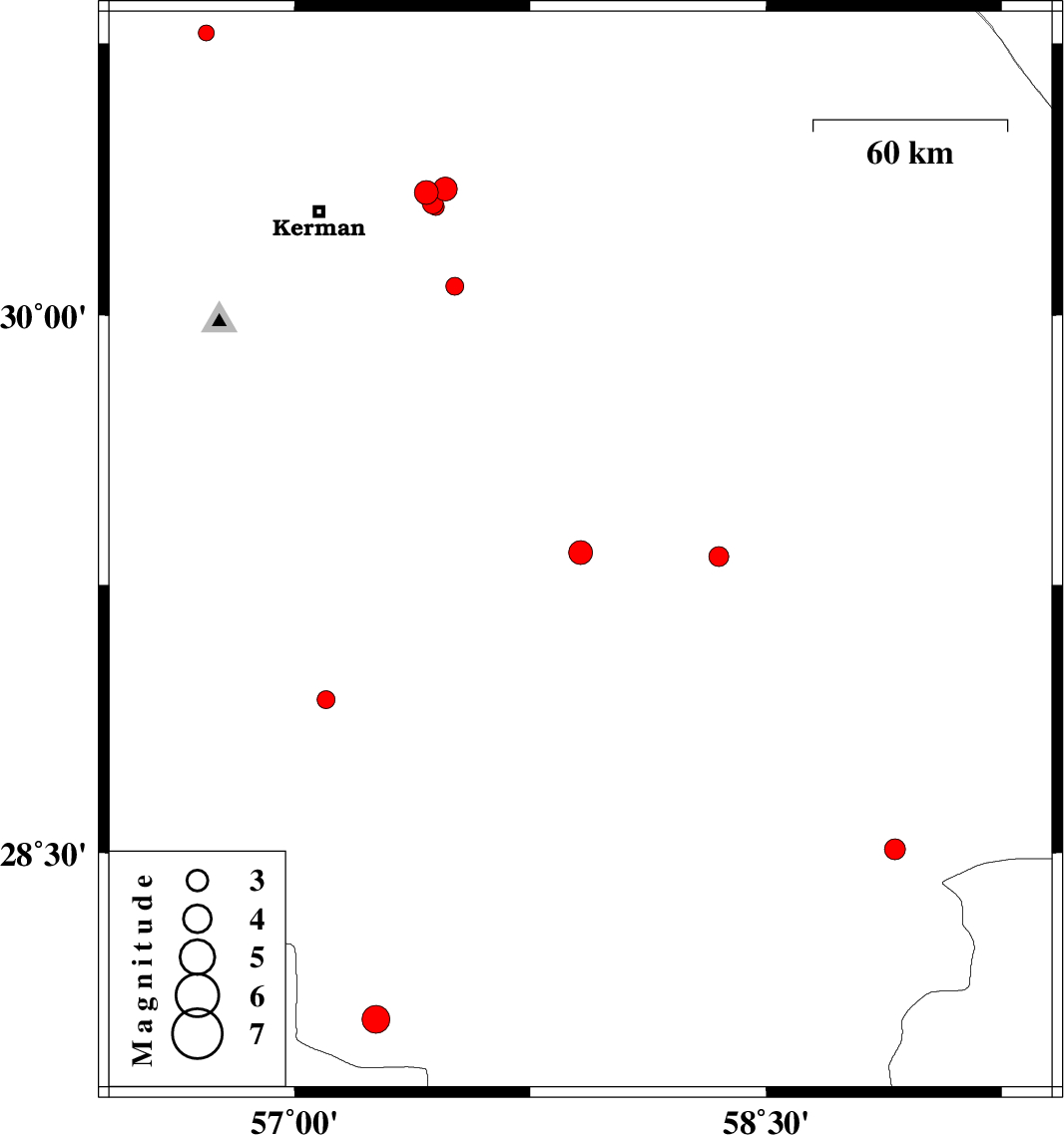| 2015/01/16 | 06:43:04.0 | 10:13:04.0 | 30.3 | 57.45 | 14 | ML2.4 | Kerman Province, 36 km East of Kerman | ||