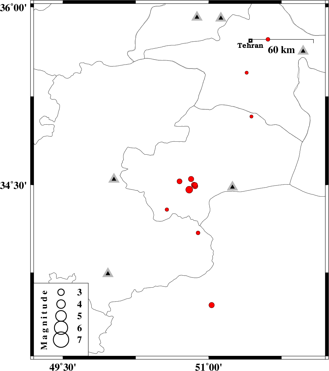 2015/01/24 | 17:34:10.2 | 21:04:10.2 | 34.5 | 50.85 | 14 | ML2.5 | Qom Province, 16 km South of Qom | ||