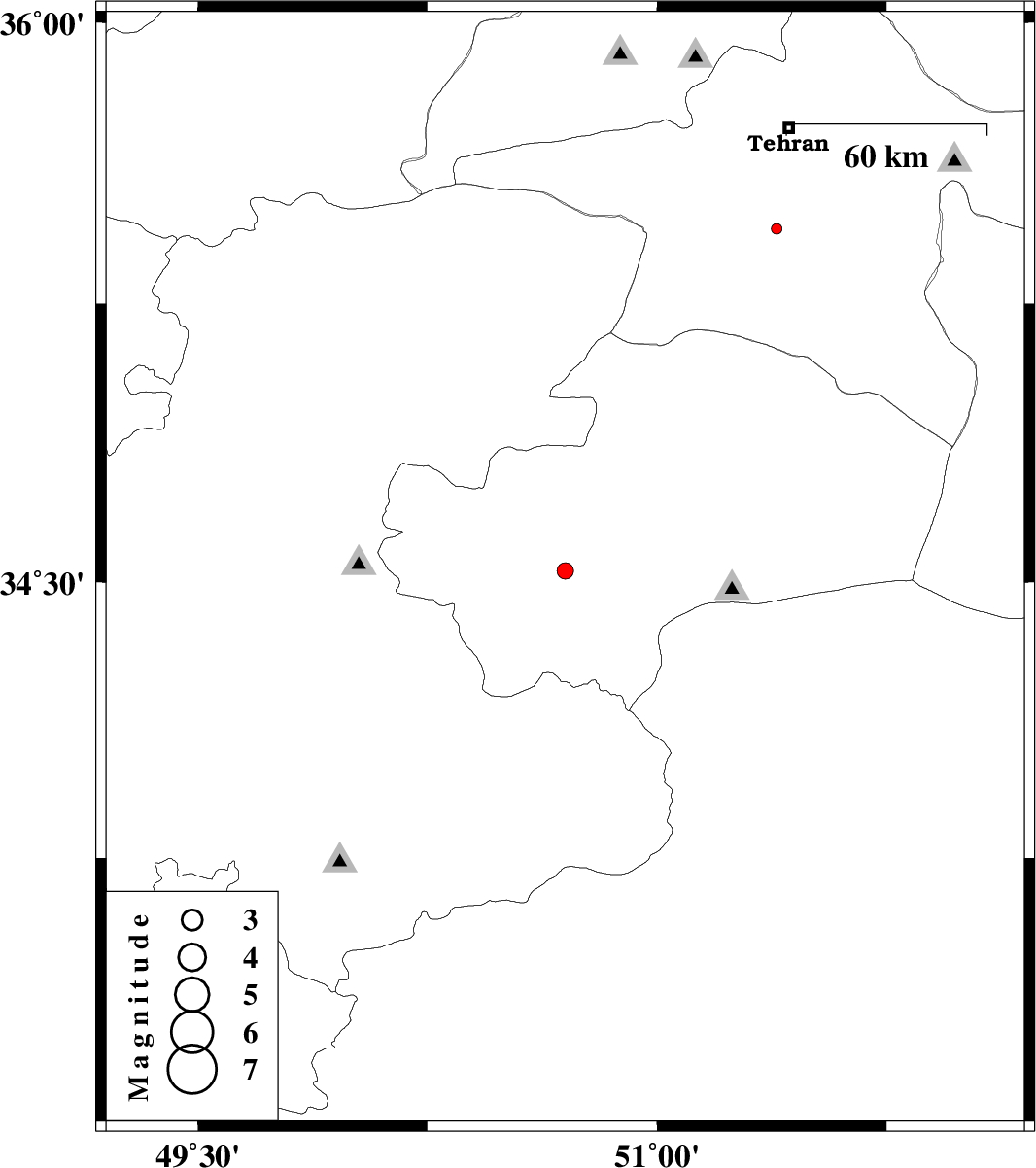 | 2015/01/30 | 13:35:21.7 | 17:05:21.7 | 35.45 | 51.39 | 18 | ML1.5 | Tehran Province, 18 km South of Rey |