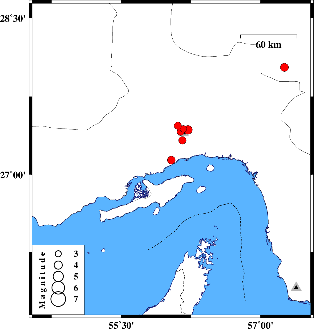 | 2015/01/28 | 00:50:47.7 | 04:20:47.7 | 27.44 | 56.17 | 17 | ML3.2 | Hormozgan Province, 30 km North-West of Bandar-e abbas | ||