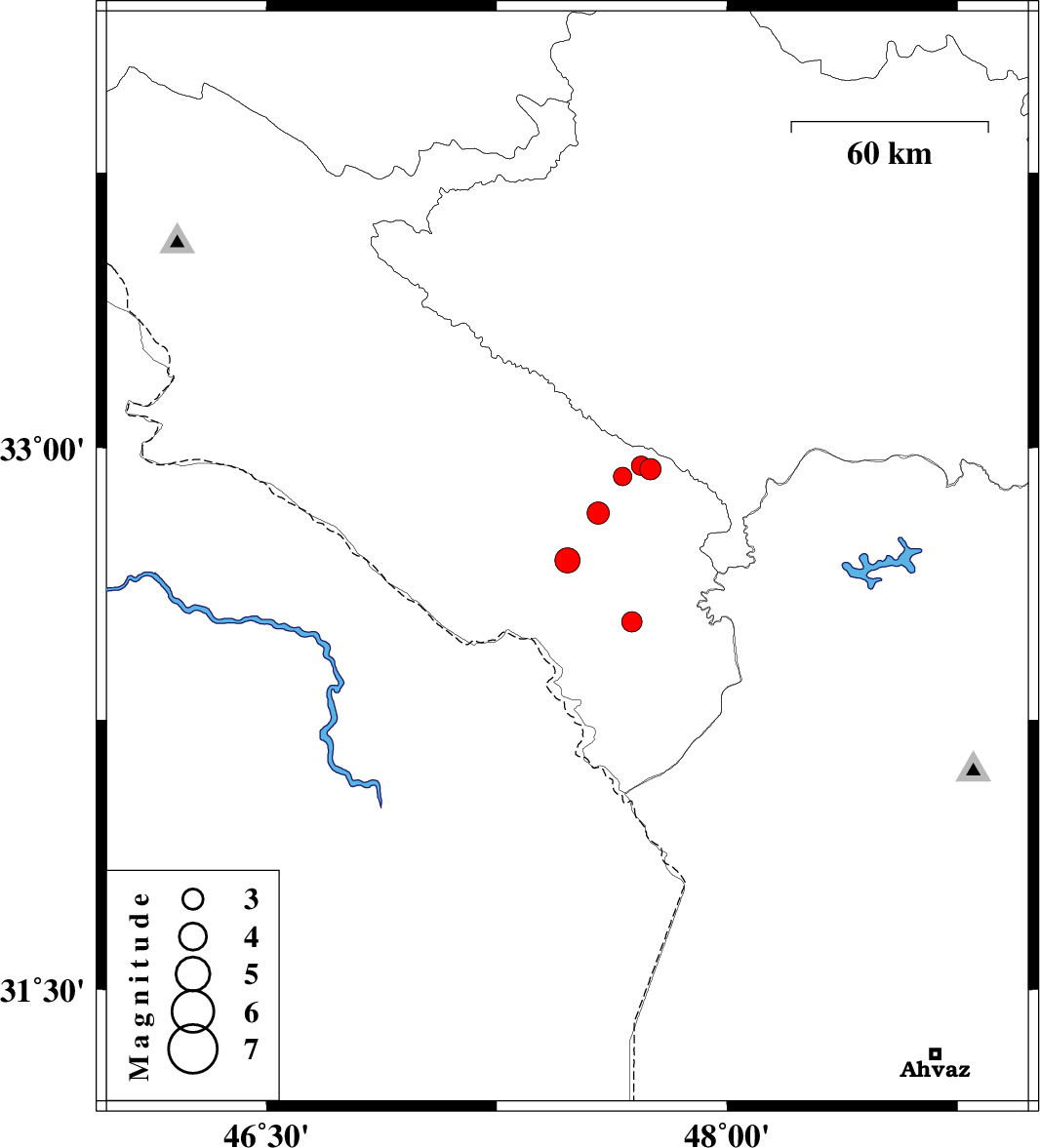| 2015/01/28 | 12:00:27.3 | 15:30:27.3 | 32.82 | 47.58 | 18 | ML3.2 | Ilam Province, 16 km South-East of Abdanan |