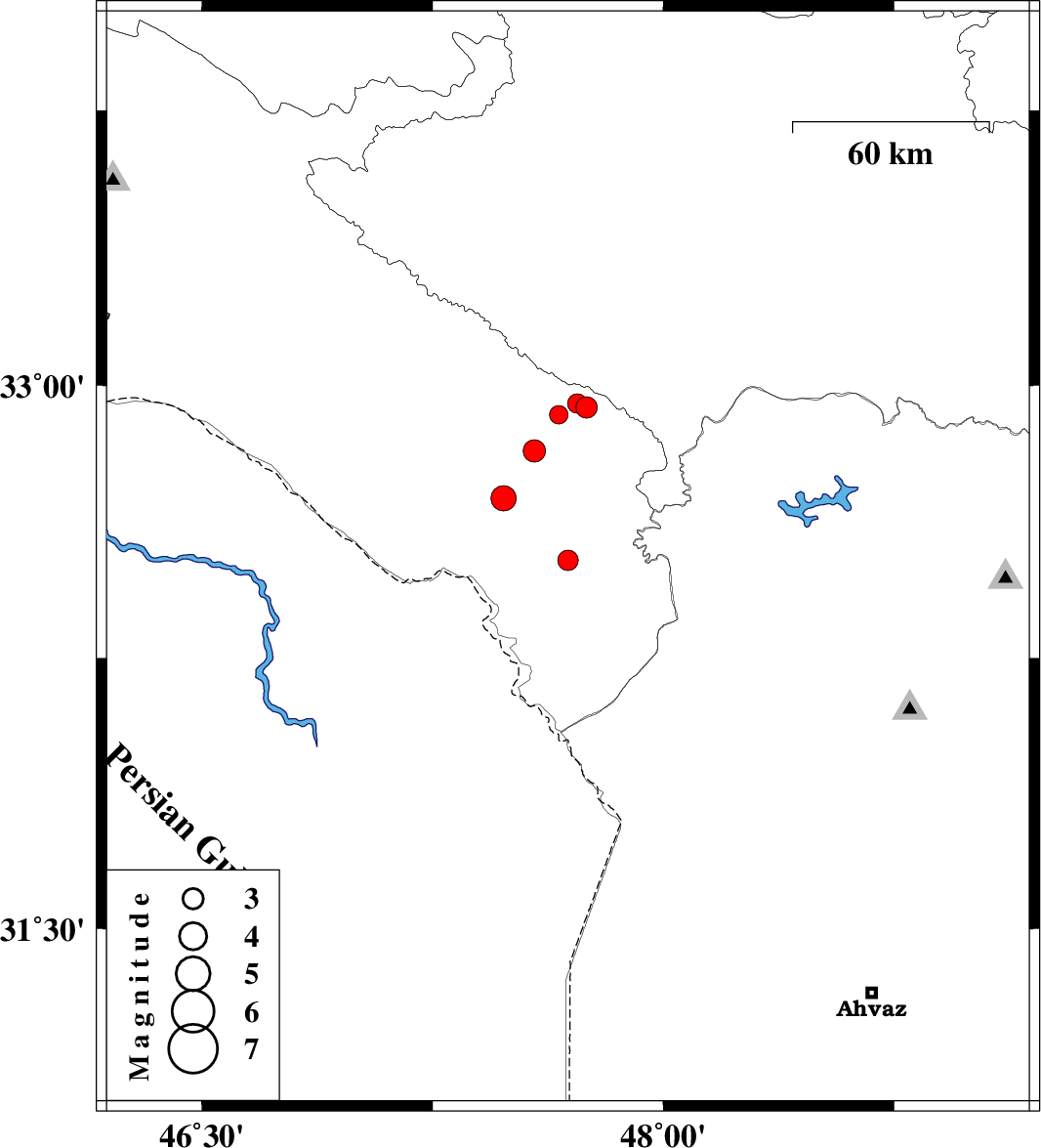2015/02/03 | 03:34:36.5 | 07:04:36.5 | 32.69 | 47.48 | 18 | ML3.6 | Ilam Province, 20 km East of Dehloran | ||