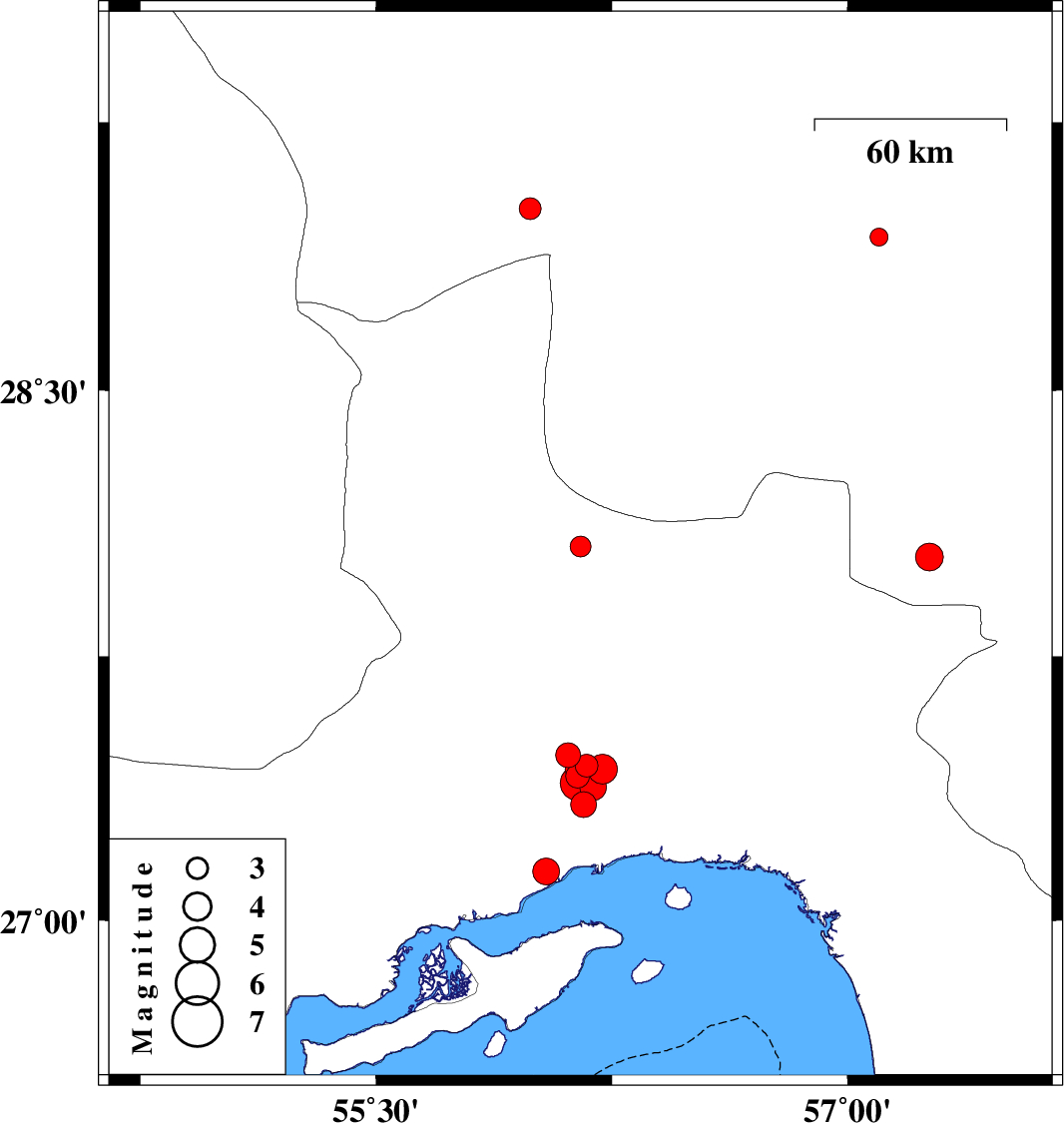| 2015/01/28 | 00:50:47.7 | 04:20:47.7 | 27.44 | 56.17 | 17 | ML3.2 | Hormozgan Province, 30 km North-West of Bandar-e abbas | ||