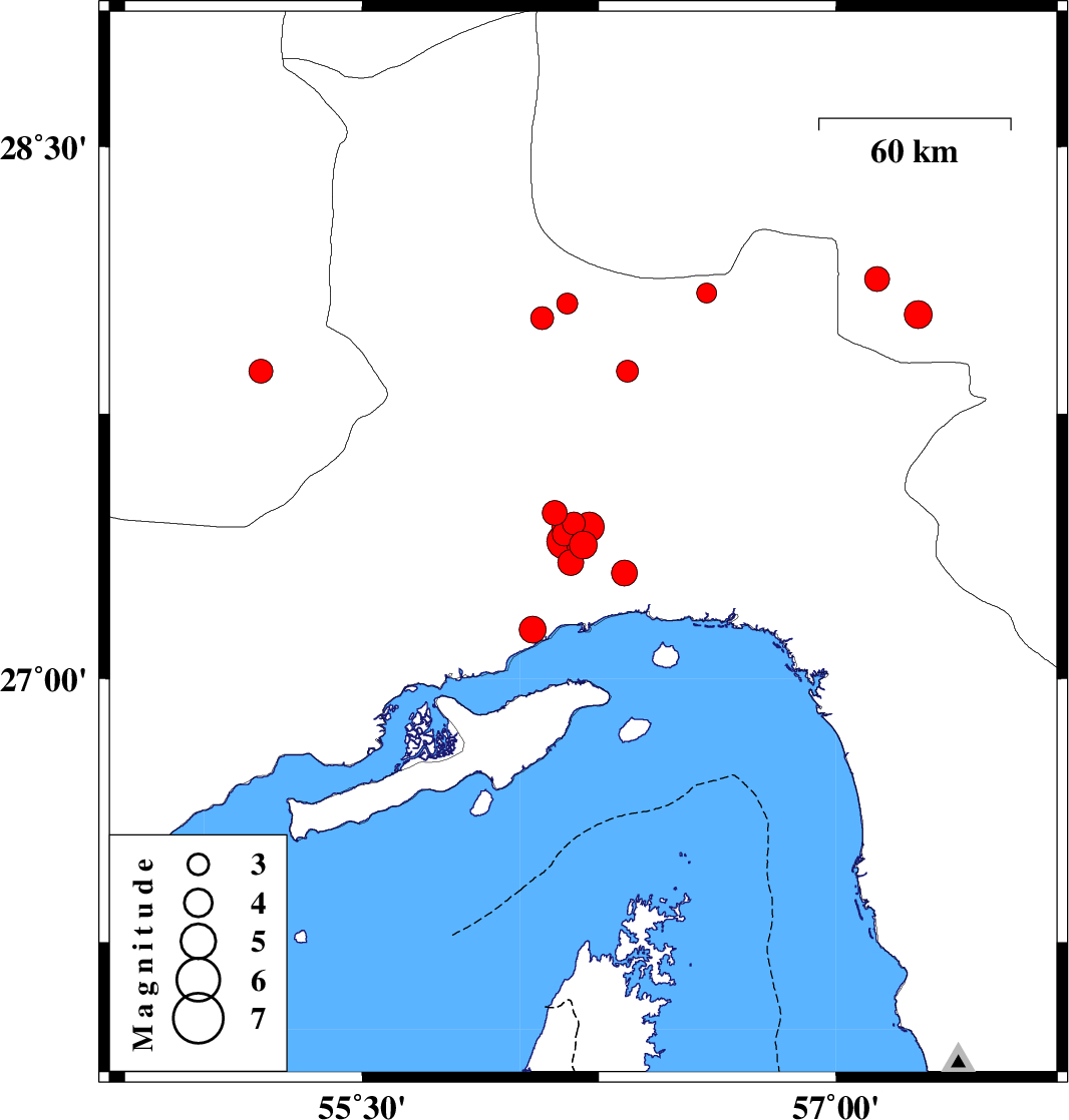 | 2015/02/14 | 07:19:26.4 | 10:49:26.4 | 27.3 | 56.33 | 14 | ML3.6 | Hormozgan Province, 14 km North of Bandar-e abbas | ||