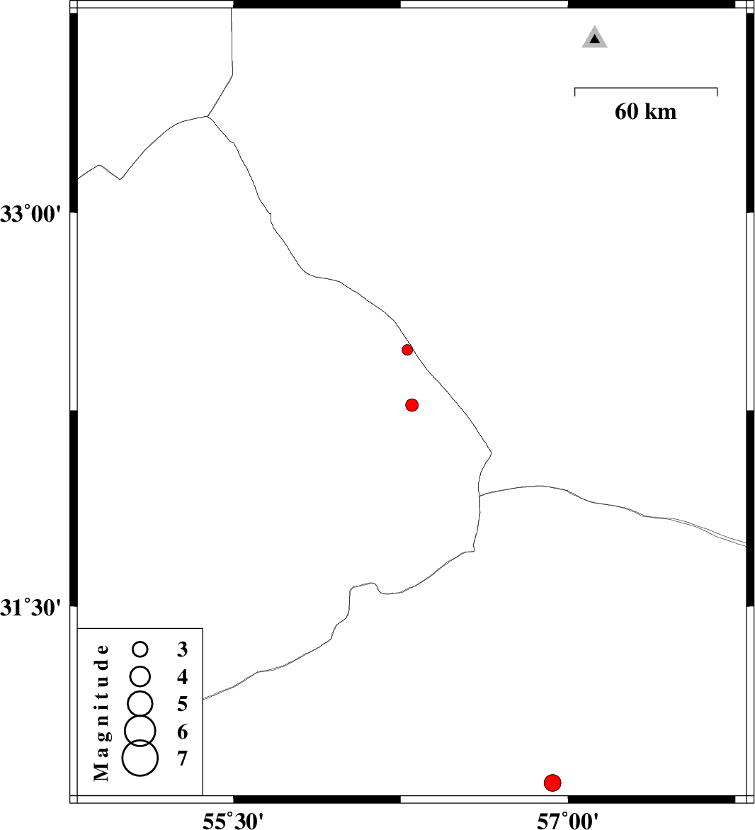 | 2015/02/11 | 16:48:33.9 | 20:18:33.9 | 30.82 | 56.93 | 15 | ML3.4 | Kerman Province, 34 km East of Zarand |