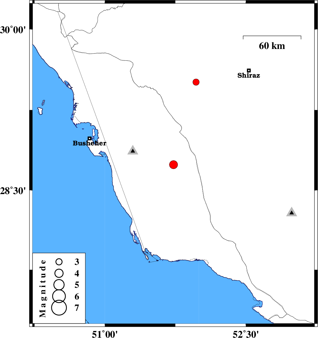| 2015/02/19 | 05:35:19.4 | 09:05:19.4 | 28.74 | 51.73 | 38 | ML3.9 | Bushehr Province, 37 km East of Khormog | ||