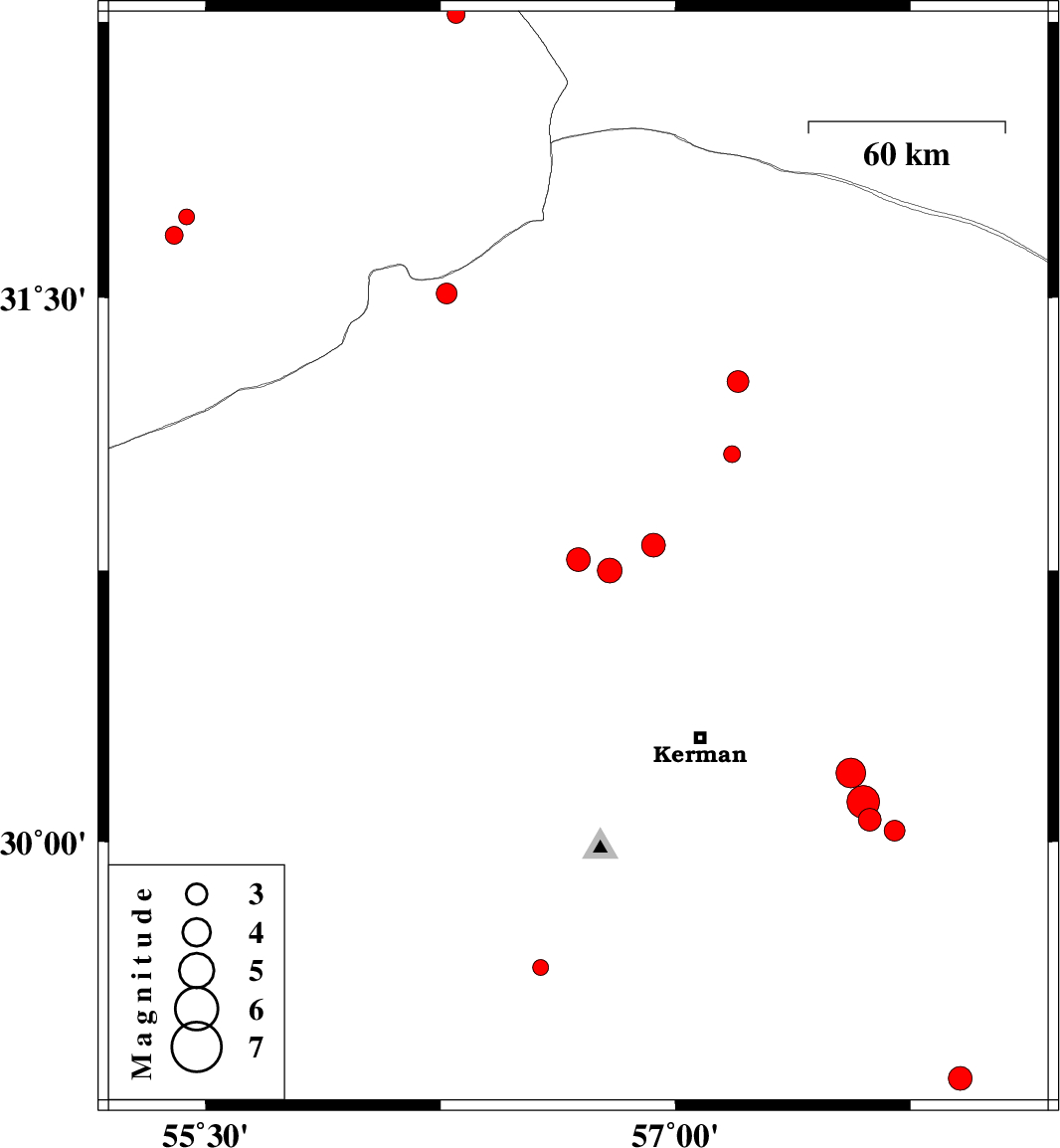 | 2015/02/04 | 02:18:35.7 | 05:48:35.7 | 30.03 | 57.7 | 16 | ML3 | Kerman Province, 66 km South-East of Kerman | ||