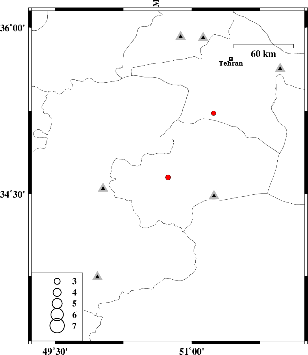 2015/02/18 | 20:06:24.5 | 23:36:24.5 | 35.23 | 51.24 | 14 | ML2.2 | Tehran Province, 39 km South of Eslamshahr |