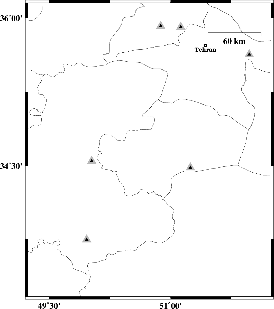 | 2015/02/18 | 20:06:24.5 | 23:36:24.5 | 35.23 | 51.24 | 14 | ML2.2 | Tehran Province, 39 km South of Eslamshahr |