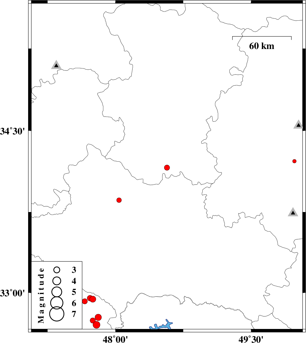 2015/01/28 | 12:00:27.3 | 15:30:27.3 | 32.82 | 47.58 | 18 | ML3.2 | Ilam Province, 16 km South-East of Abdanan |