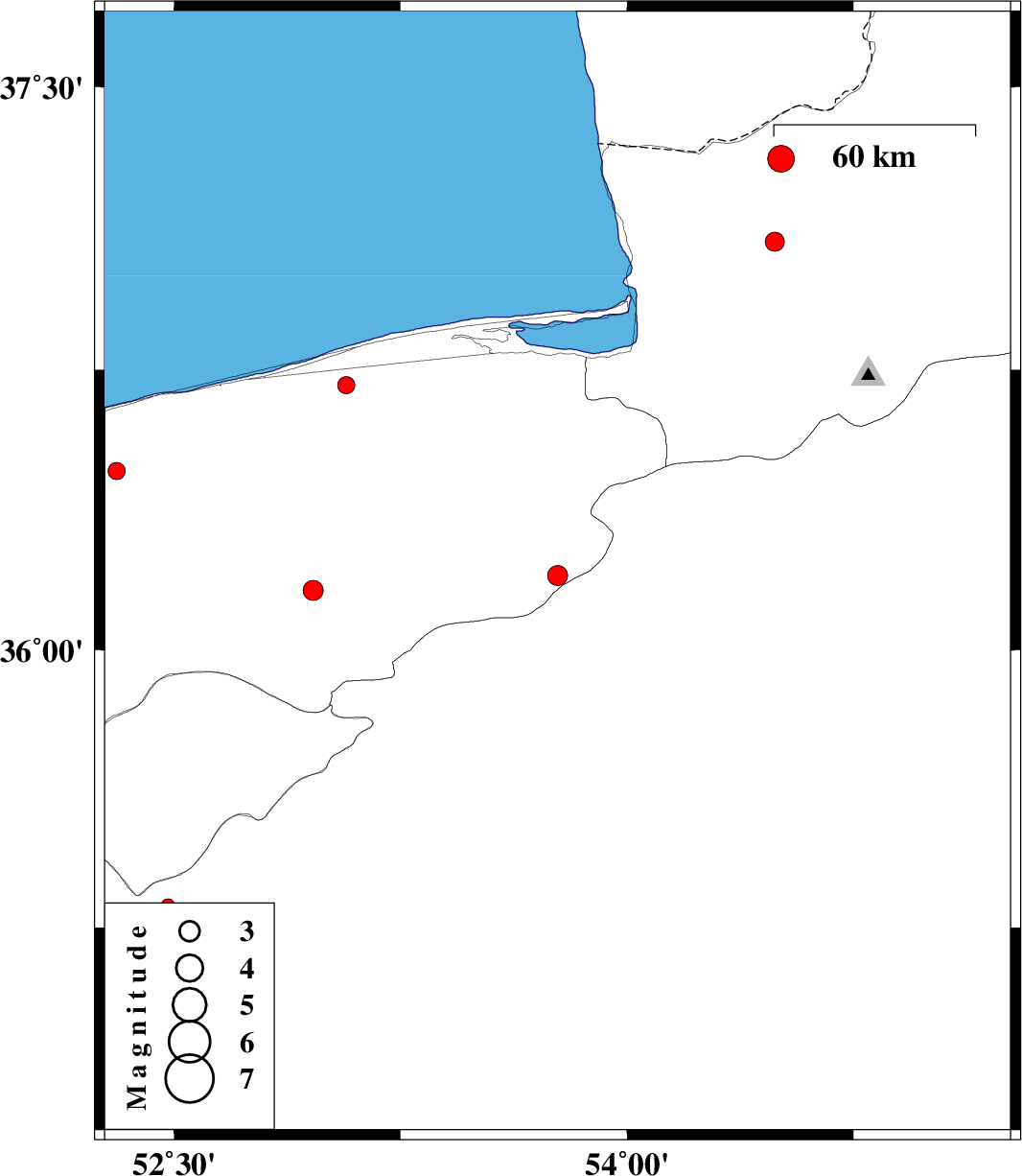 | 2015/02/22 | 05:56:55.1 | 09:26:55.1 | 36.16 | 52.96 | 15 | ML3 | Mazandaran Province, 11 km West of Pol-E-Sefid | ||