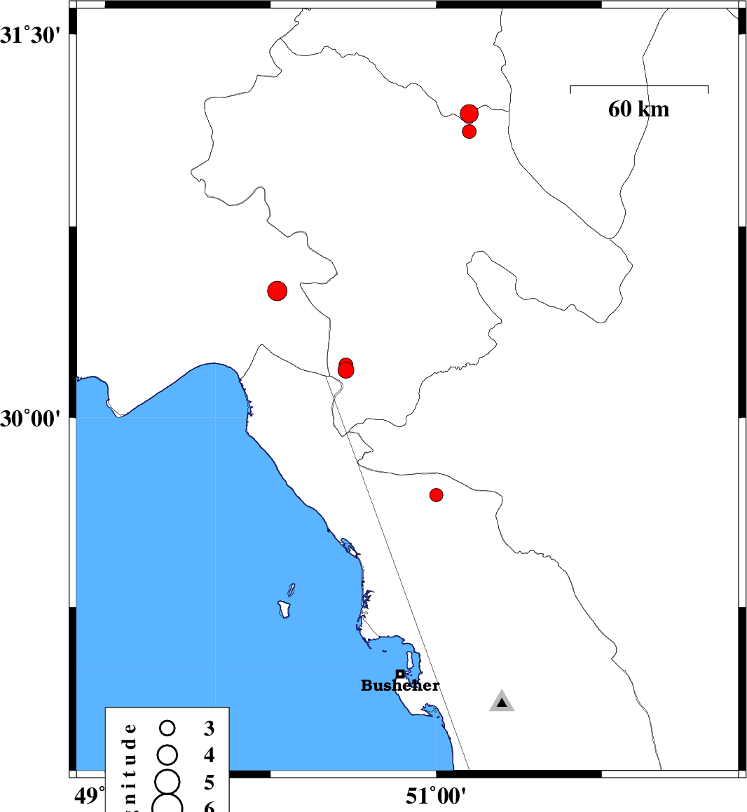 | 2015/02/24 | 10:57:03.2 | 14:27:03.2 | 30.59 | 50.46 | 14 | ML3.2 | Khoozestan Province, 20 km East of Behbahan | ||