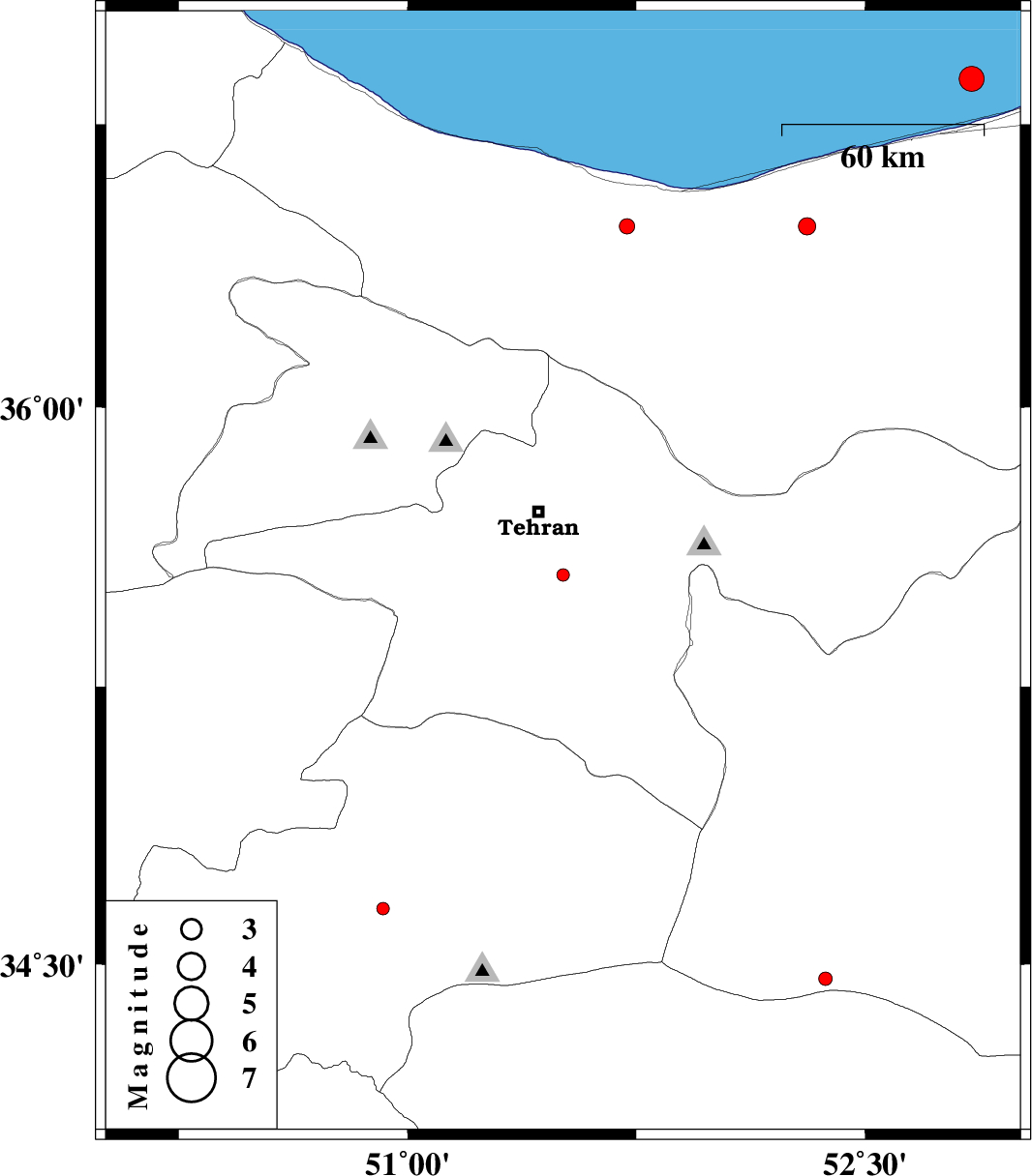 2015/03/02 | 22:38:37.3 | 02:08:37.3 | 36.87 | 52.85 | 14 | ML3.6 | Caspian Sea, 26 km North of Joybar | ||