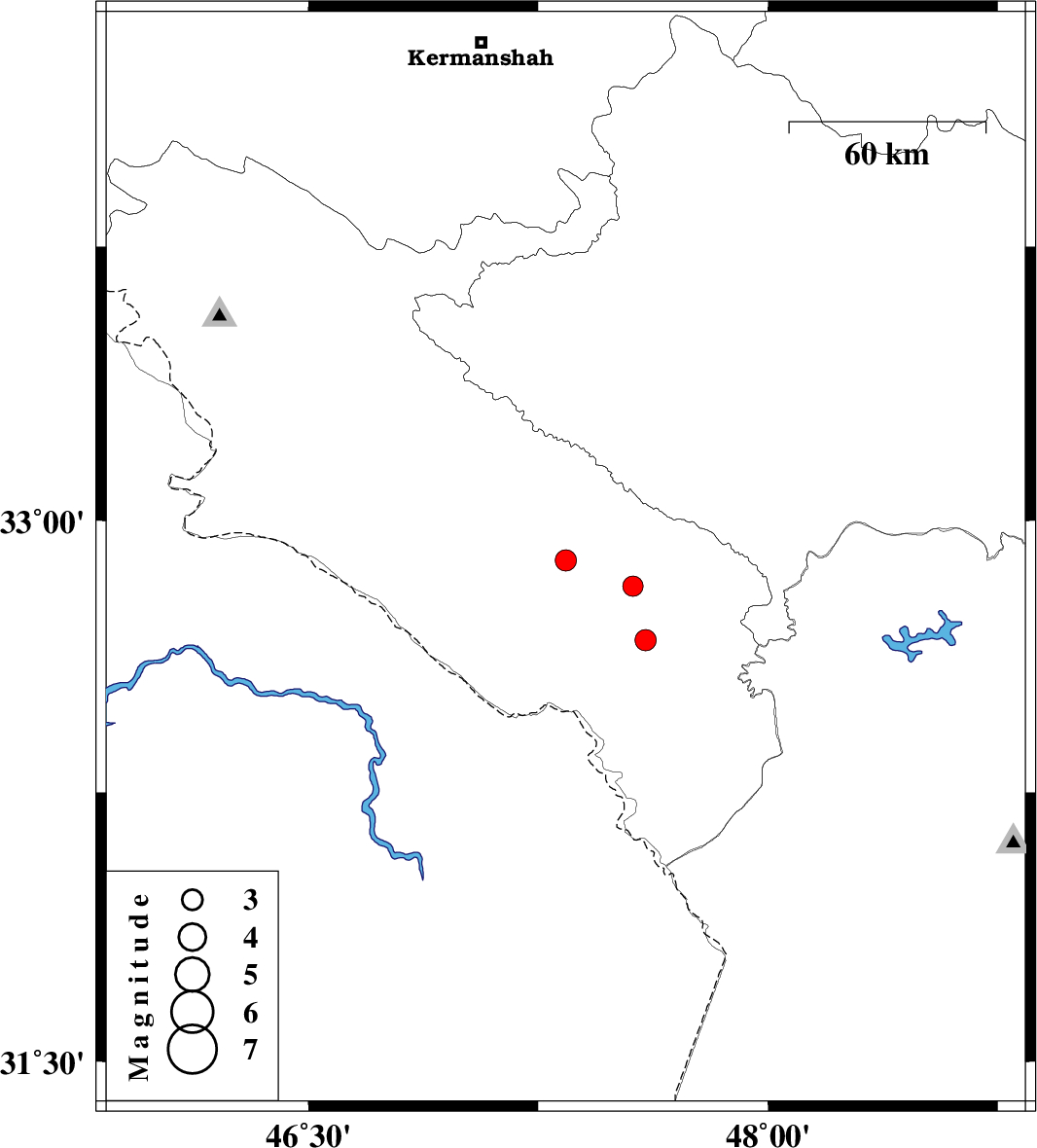 | 2015/03/01 | 02:43:54.5 | 06:13:54.5 | 32.82 | 47.56 | 14 | ML3 | Ilam Province, 14 km South of Abdanan |