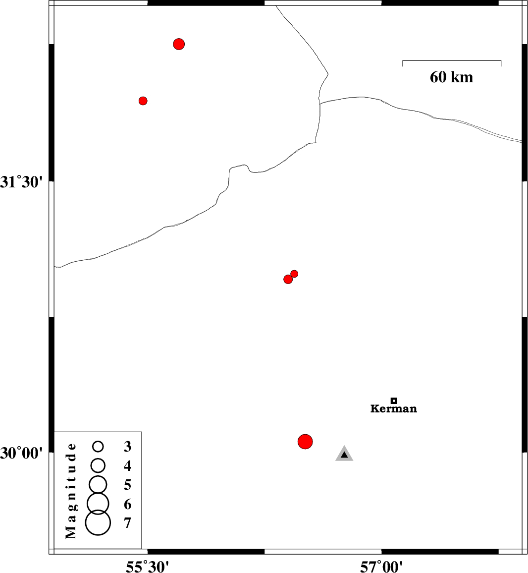 | 2015/03/03 | 10:07:59.0 | 13:37:59.0 | 30.99 | 56.44 | 14 | ML2.1 | Kerman Province, 23 km North-West of Zarand |