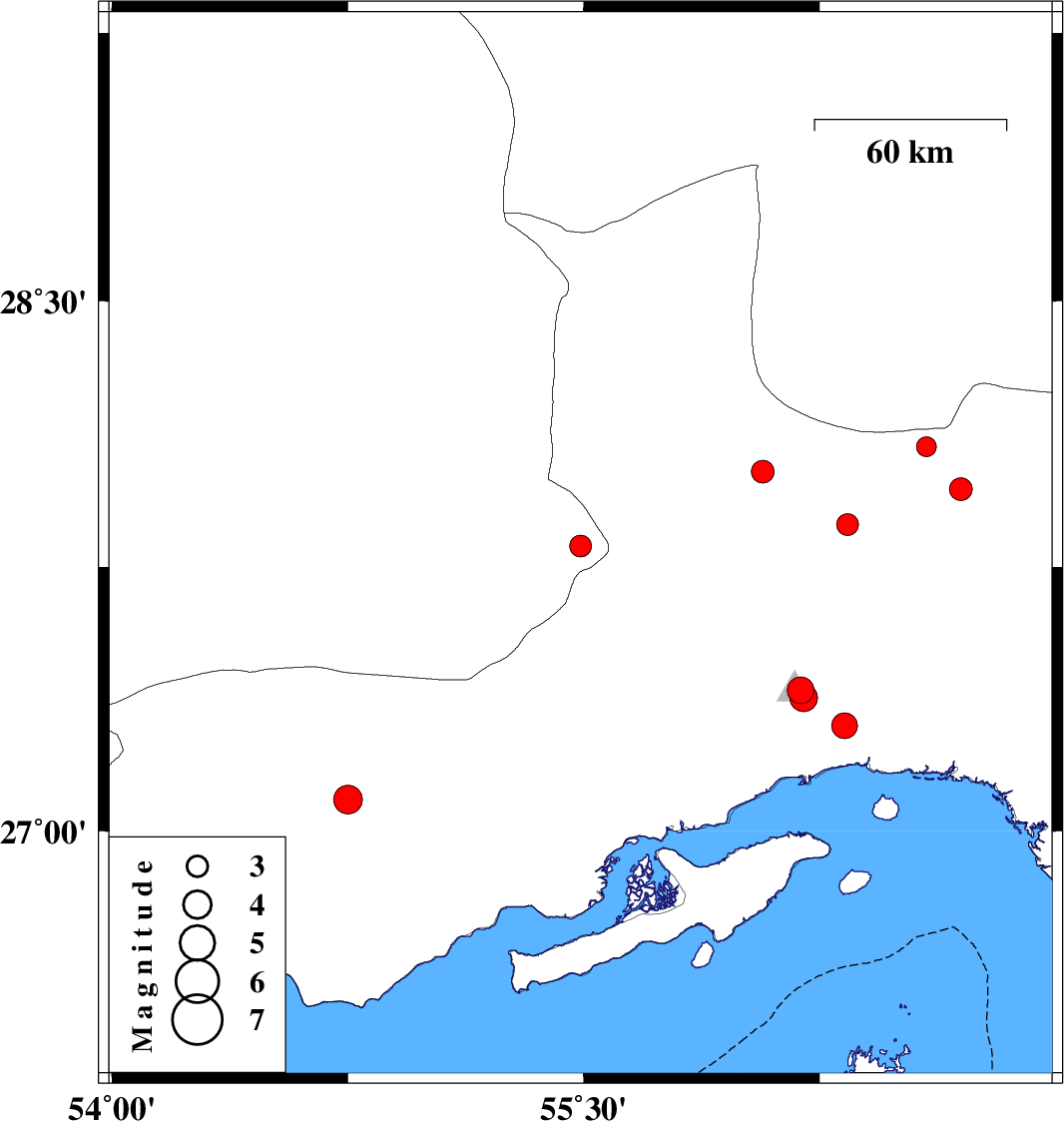 | 2015/02/14 | 07:19:26.4 | 10:49:26.4 | 27.3 | 56.33 | 14 | ML3.6 | Hormozgan Province, 14 km North of Bandar-e abbas | ||