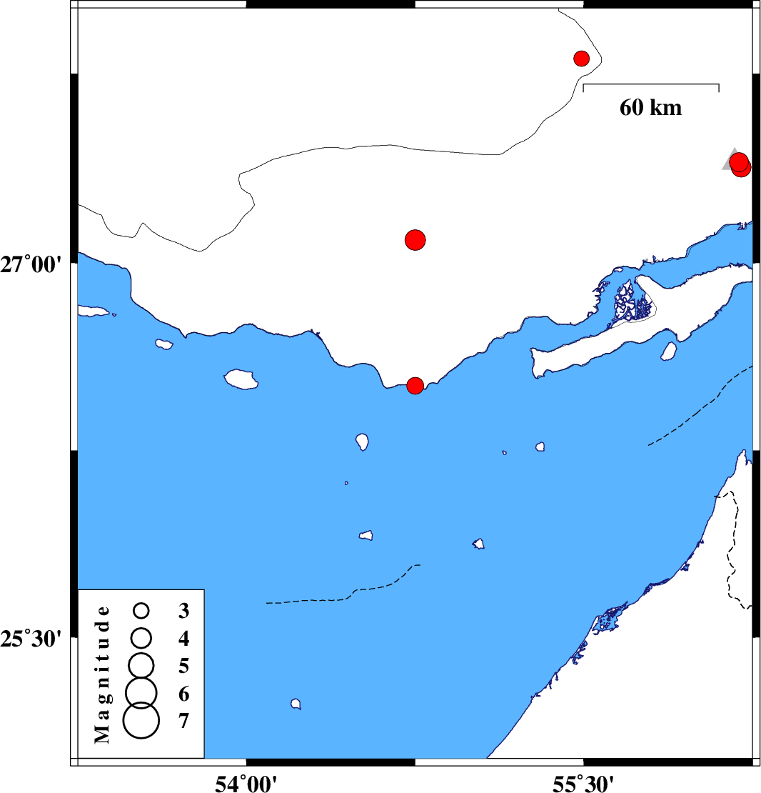 | 2015/02/18 | 17:28:53.7 | 20:58:53.7 | 27.38 | 56.2 | 14 | ML3.9 | Hormozgan Province, 23 km North of Bandar-e abbas |