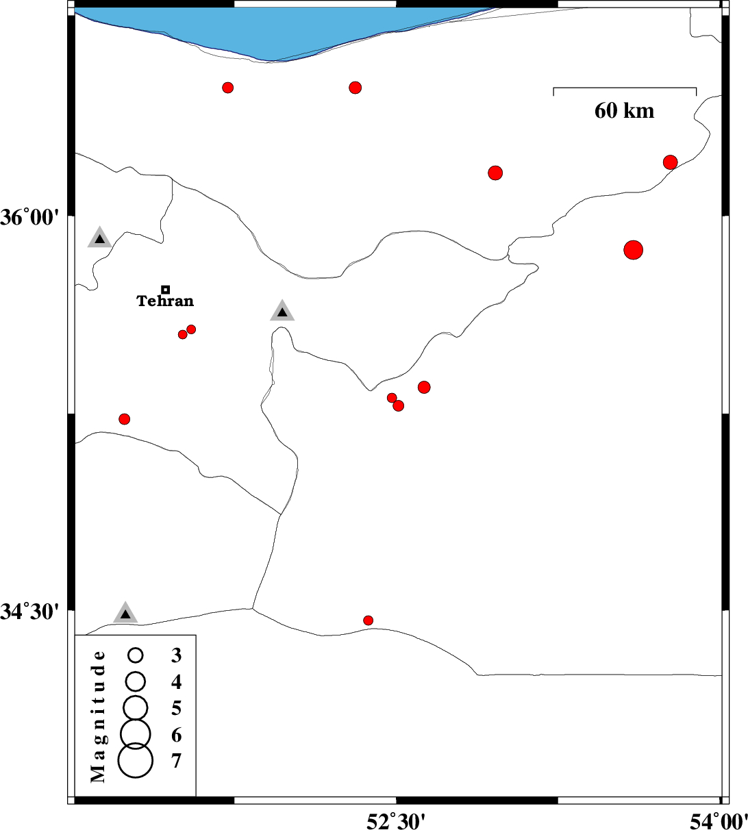 | 2015/03/16 | 19:56:00.3 | 23:26:00.3 | 35.28 | 52.51 | 14 | ML2.3 | Semnan Province, 17 km East of Garmsar | ||