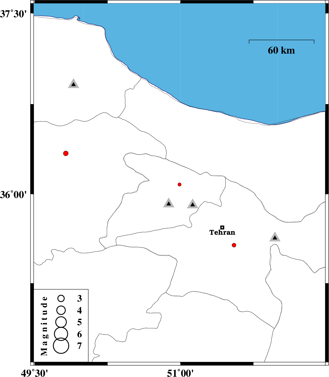 | 2015/03/12 | 08:49:09.0 | 12:19:09.0 | 35.57 | 51.55 | 14 | ML1.9 | Tehran Province, 11 km East of Rey |