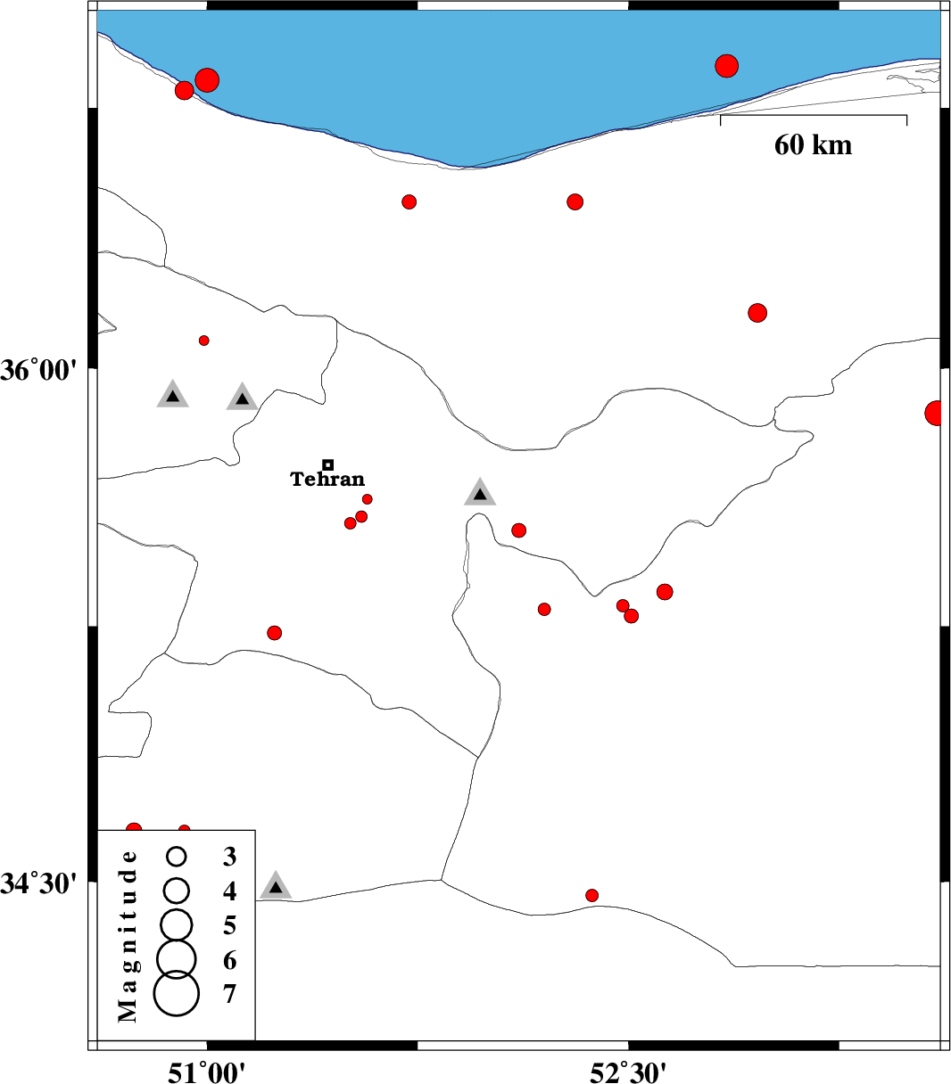 | 2015/02/22 | 08:18:22.7 | 11:48:22.7 | 36.83 | 51 | 18 | ML3.8 | Caspian Sea, 10 km East of Tonekabon | ||