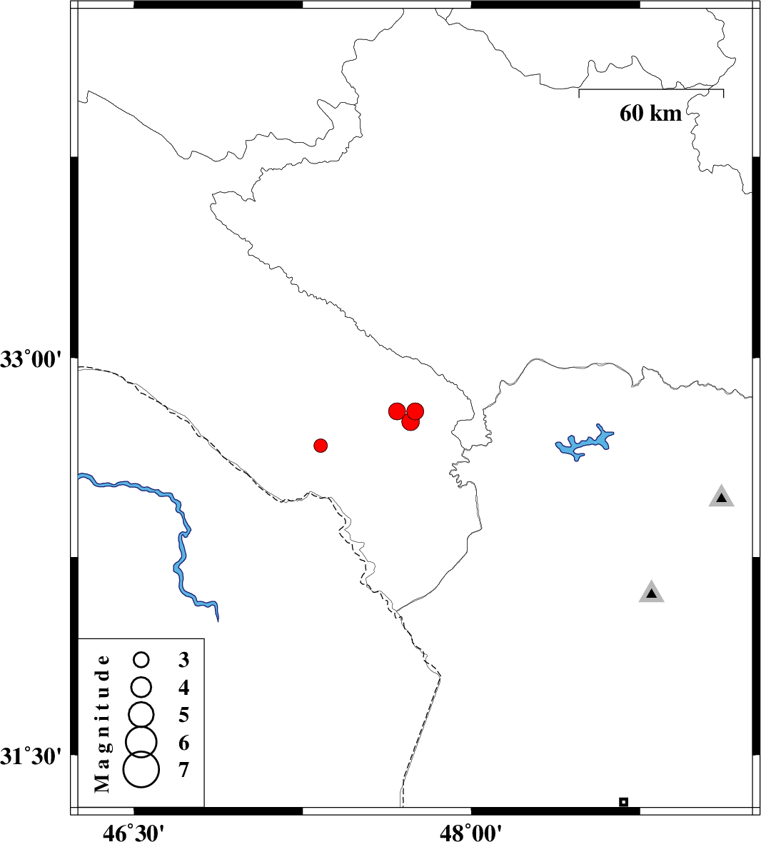 | 2015/03/12 | 15:49:03.8 | 19:19:03.8 | 32.67 | 47.33 | 35 | ML2.7 | Ilam Province, 7 km Dehloran |