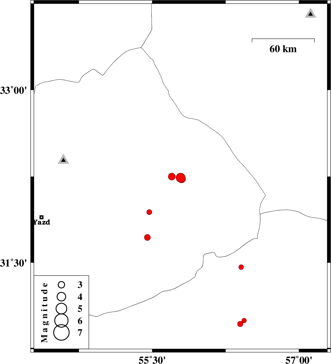 | 2015/03/15 | 10:48:20.8 | 14:18:20.8 | 31.72 | 55.45 | 14 | ML2.8 | Yazd Province, 13 km North of Bafq | ||