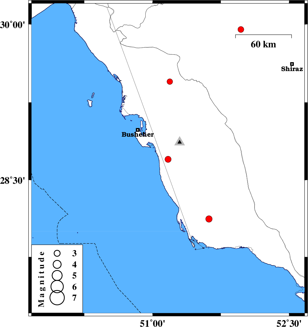 | 2015/03/09 | 23:19:24.9 | 02:49:24.9 | 29.45 | 51.19 | 14 | ML2.8 | Bushehr Province, 21 km North of Borazjan |