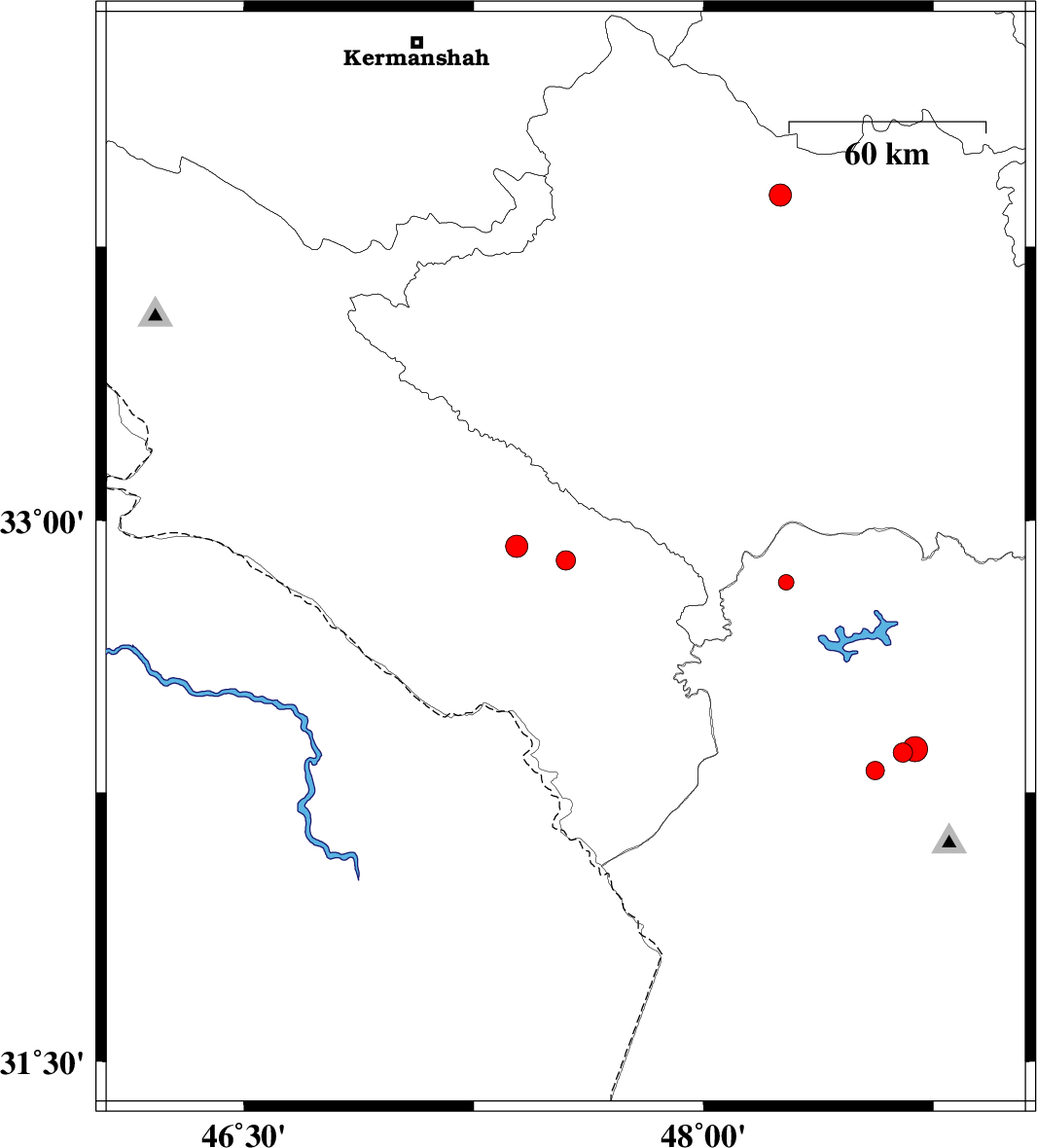 | 2015/04/05 | 01:21:40.9 | 05:51:40.9 | 32.93 | 47.39 | 14 | ML3.3 | Ilam Province, 7 km Abdanan | ||
