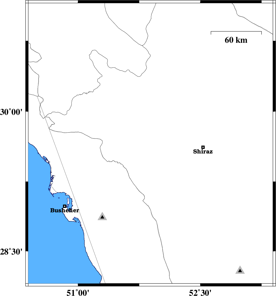 | 2015/04/05 | 05:03:57.7 | 09:33:57.7 | 29.12 | 51.29 | 7 | ML3.4 | Bushehr Province, 18 km South of Borazjan | ||