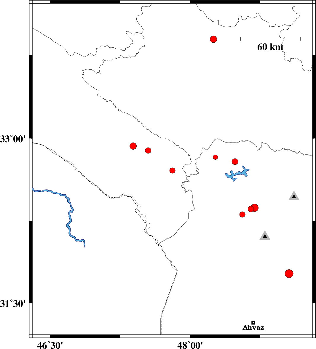 | 2015/04/09 | 03:37:55.0 | 08:07:55.0 | 32.89 | 47.55 | 14 | ML2.8 | Ilam Province, 9 km Abdanan | ||