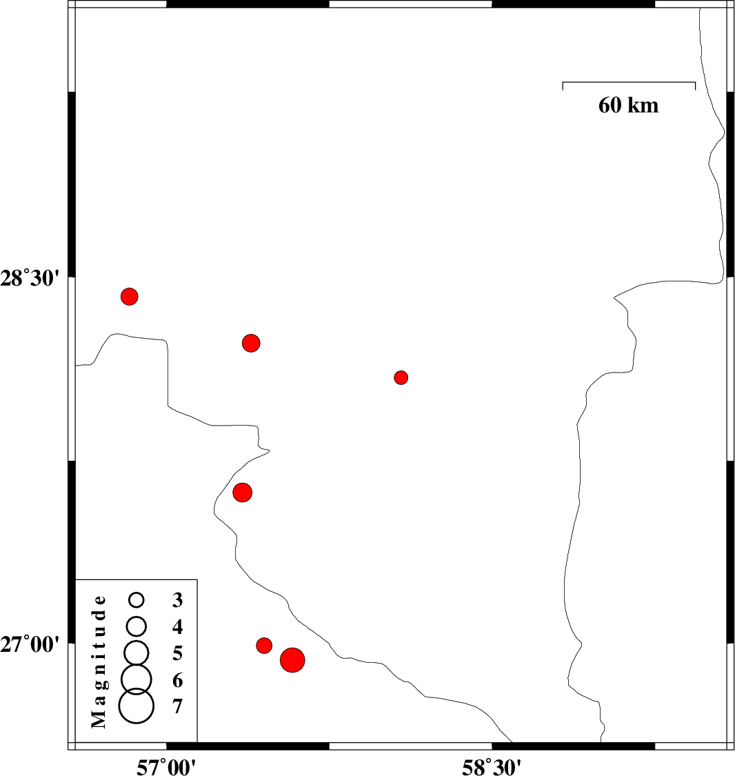 | 2015/03/13 | 06:00:36.6 | 09:30:36.6 | 27.62 | 57.35 | 14 | ML4 | Kerman Province, 24 km North-East of Dehbarez |