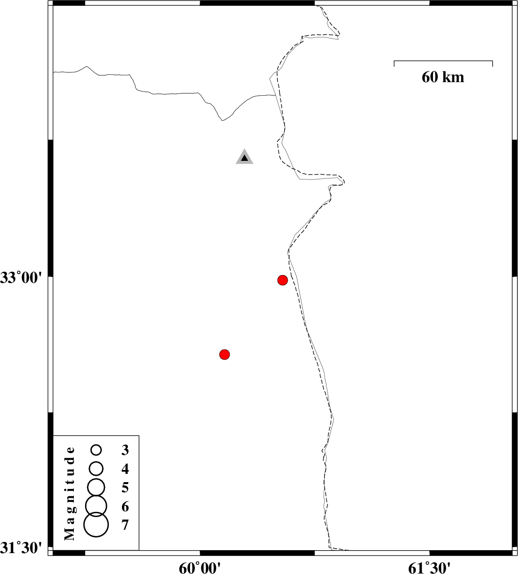 | 2015/04/11 | 17:53:14.4 | 22:23:14.4 | 32.57 | 60.16 | 6 | ML2.9 | Khorasan(south) Province, 35 km East of Sarbisheh |