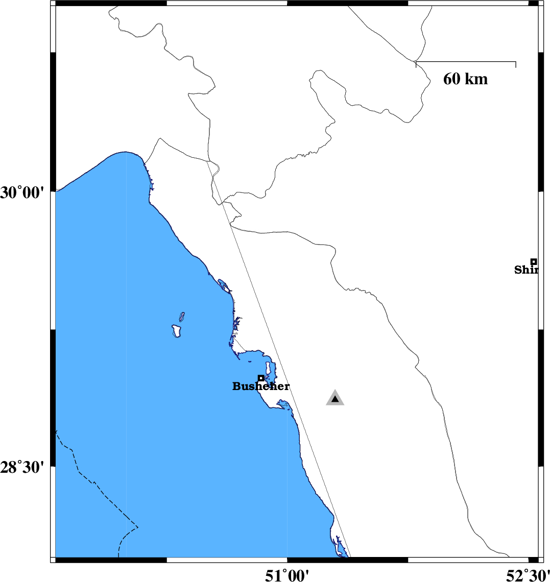 | 2015/04/18 | 23:04:55.3 | 03:34:55.3 | 29.11 | 51.09 | 14 | ML3.3 | Bushehr Province, 20 km South-West of Borazjan | ||