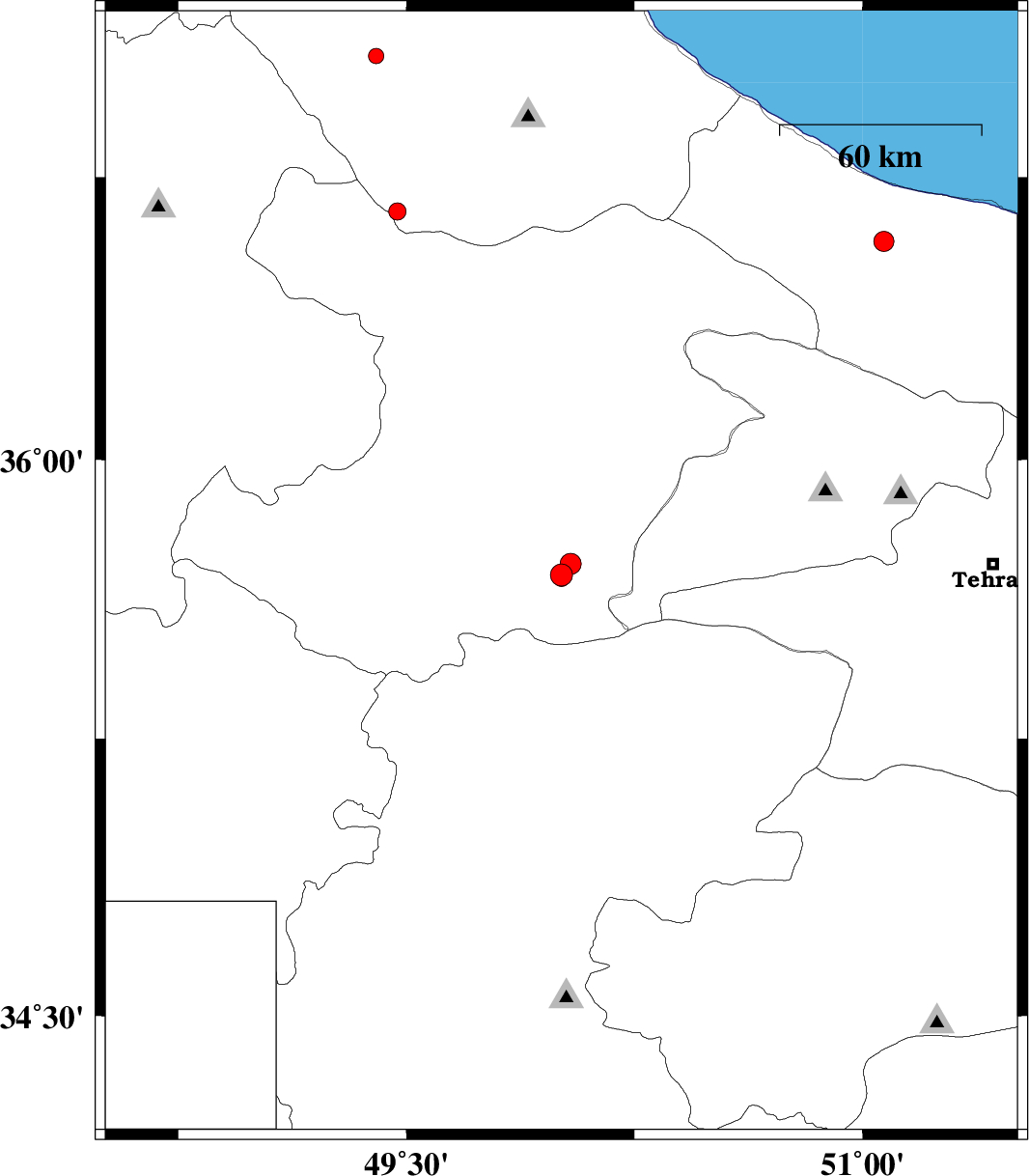 | 2015/04/11 | 16:08:26.6 | 20:38:26.6 | 36.58 | 51.07 | 14 | ML2.9 | Mazandaran Province, 31 km South-East of Tonekabon | ||