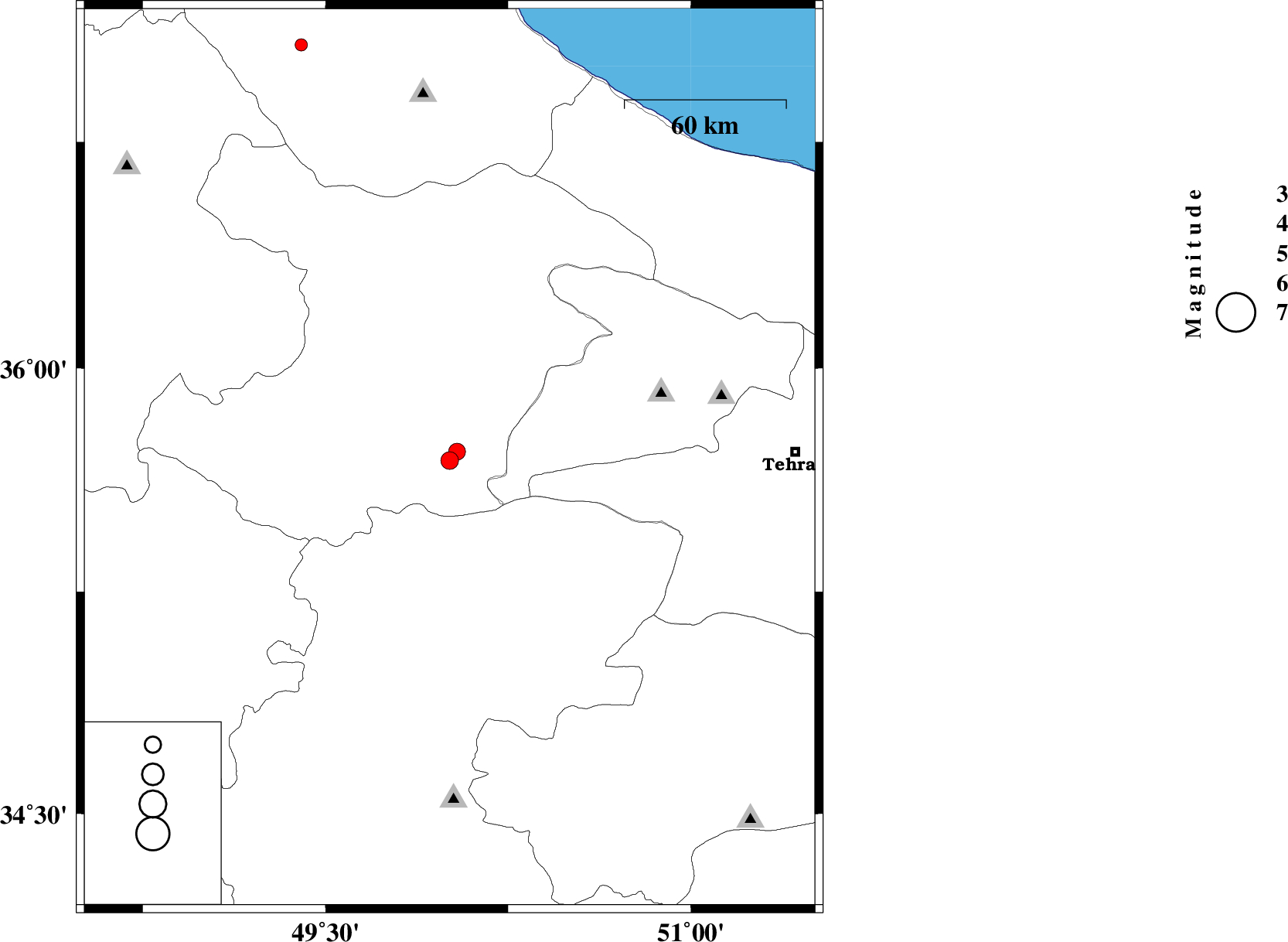 | 2015/04/23 | 00:16:52.1 | 04:46:52.1 | 35.69 | 50.01 | 14 | ML3.3 | Ghazvin Province, 11 km Buinzara | ||