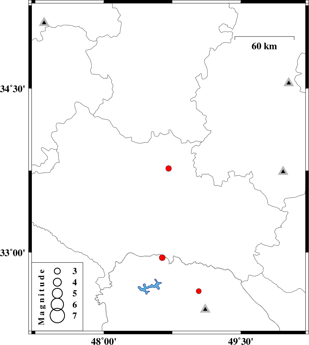 | 2015/04/23 | 14:46:25.9 | 19:16:25.9 | 33.77 | 48.71 | 15 | ML2.8 | Lorestan Province, 14 km South of Borujerd | ||