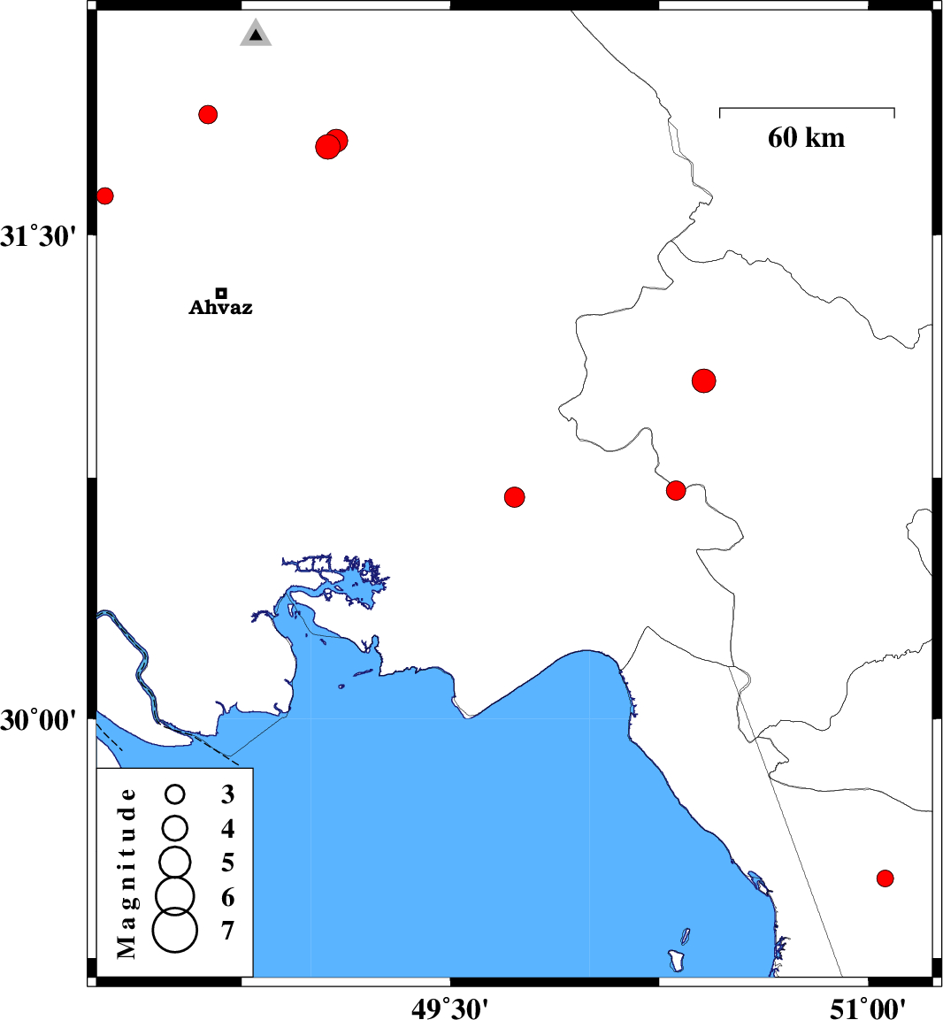 | 2015/03/25 | 11:05:59.6 | 15:35:59.6 | 31.79 | 49.09 | 14 | ML3.6 | Khoozestan Province, 26 km South-West of Masjed Soleyman |