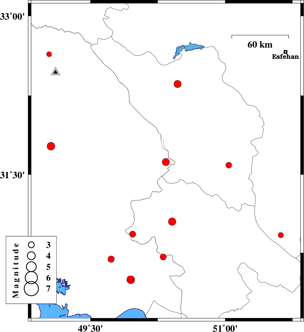 | 2015/05/02 | 09:52:11.9 | 14:22:11.9 | 31.62 | 50.34 | 15 | ML3.6 | Khoozestan Province, 44 km East of Bagh Malek | ||