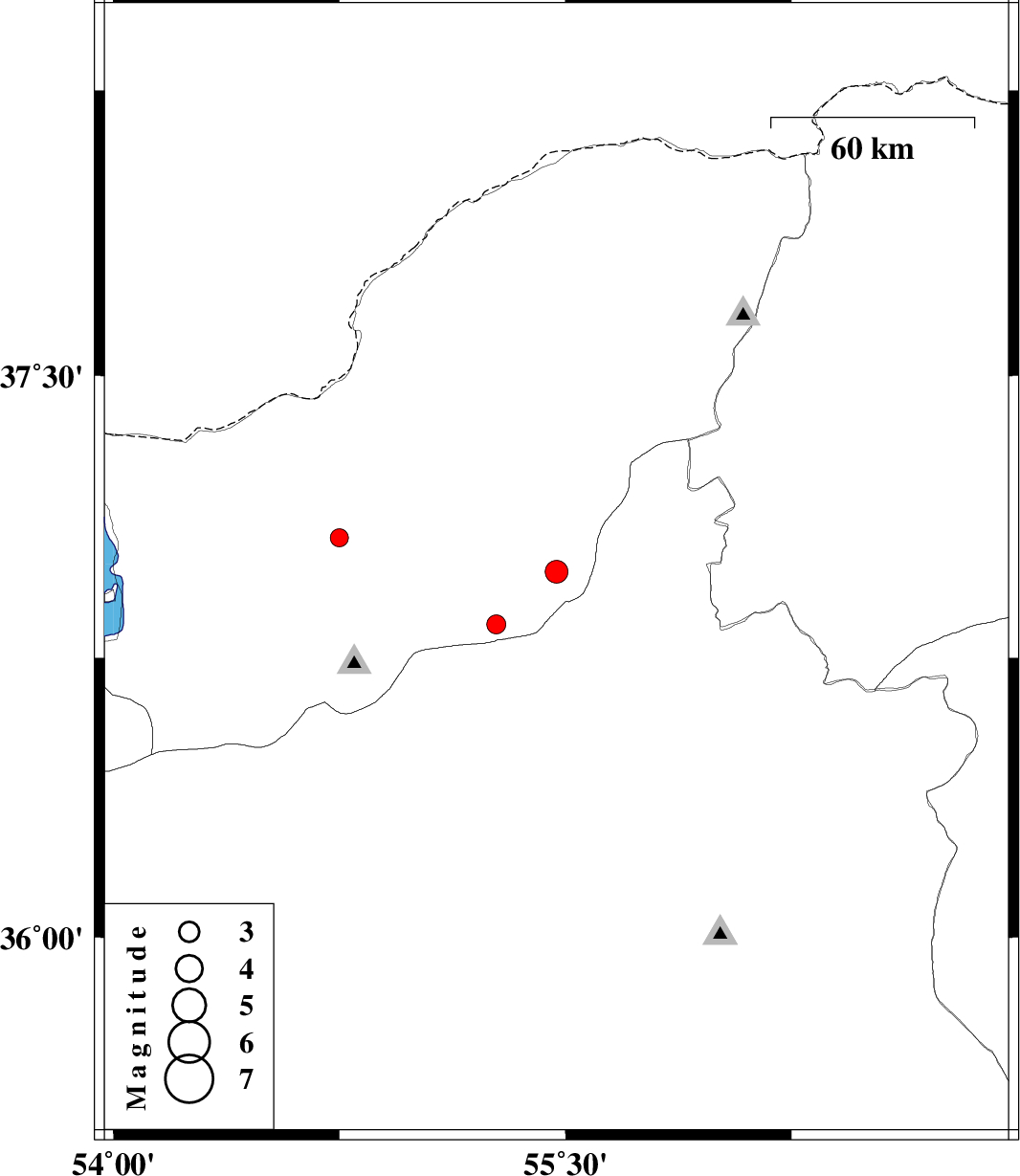 2015/05/05 | 02:00:58.8 | 06:30:58.8 | 36.84 | 55.27 | 15 | ML:2.8 | Golestan Province, 22 km South-East of Ramian |