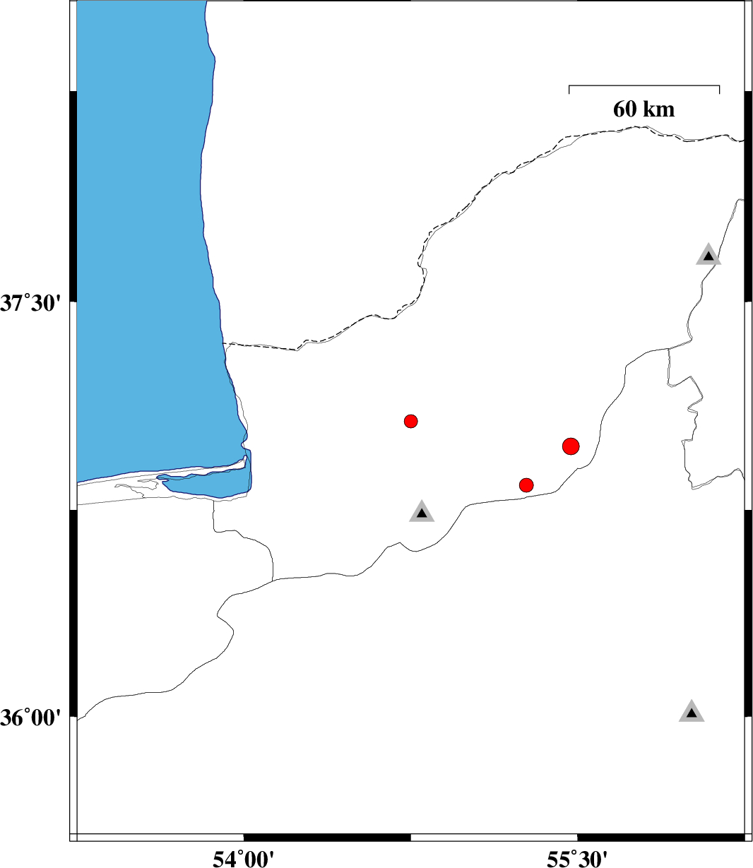 2015/05/05 | 02:00:58.8 | 06:30:58.8 | 36.84 | 55.27 | 15 | ML2.8 | Golestan Province, 22 km South-East of Ramian |