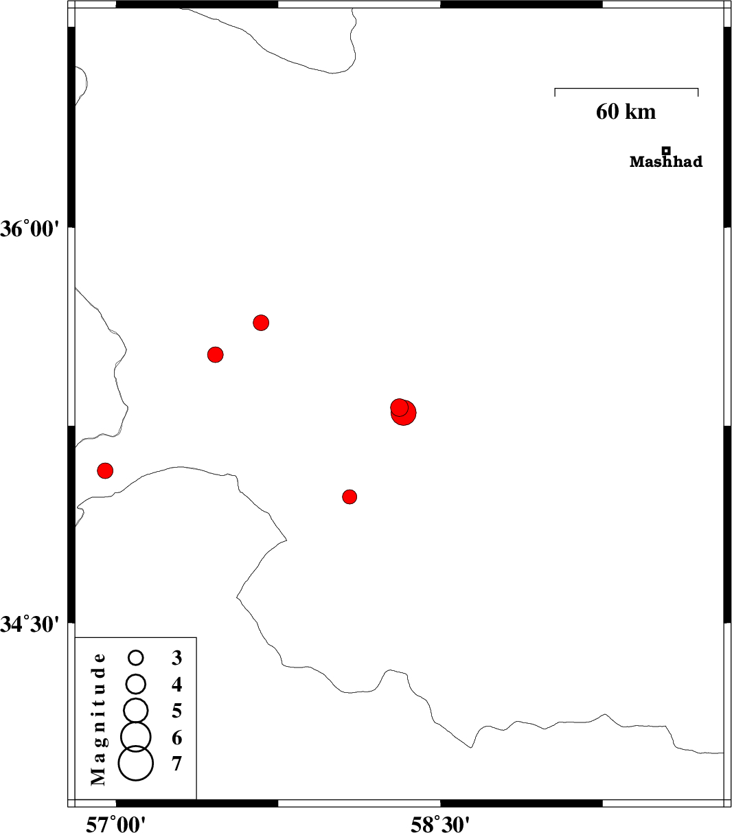 | 2015/04/16 | 07:11:57.0 | 11:41:57.0 | 34.98 | 58.08 | 16 | ML3 | Khorasan(center) Province, 33 km South-East of Bardeskan | ||