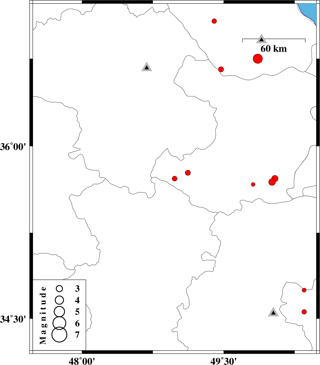 | 2015/05/10 | 22:08:58.3 | 02:38:58.3 | 36.75 | 49.86 | 16 | ML4.5 | Gilan Province, 44 km South of Siahkal | ||