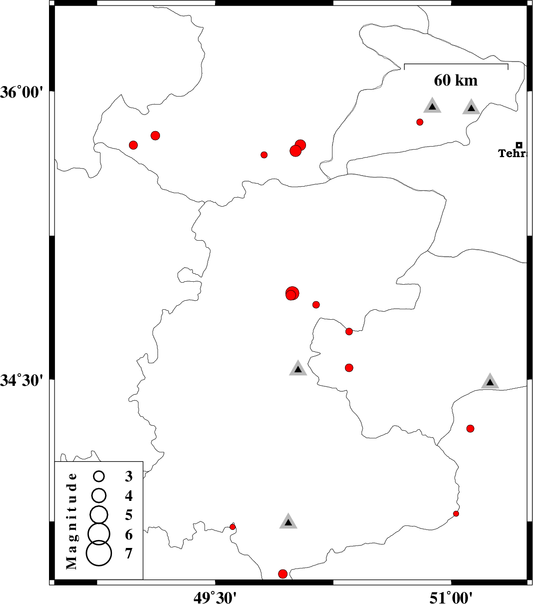 | 2015/05/12 | 11:56:34.1 | 16:26:34.1 | 34.89 | 50.14 | 21 | ML2 | Markazi Province, 24 km North-East of Tafresh | ||