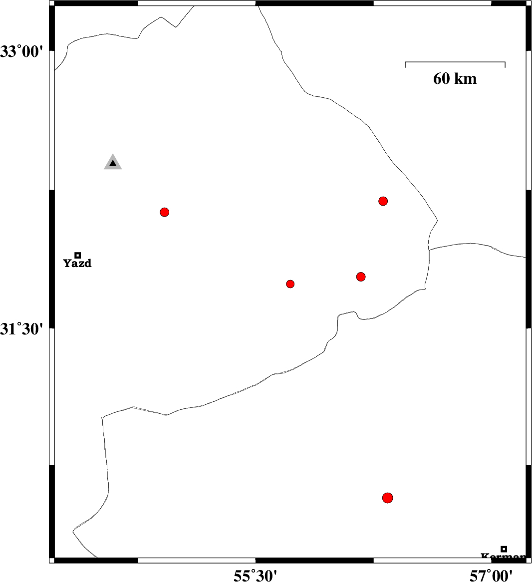 | 2015/05/11 | 05:04:49.3 | 09:34:49.3 | 32.13 | 54.92 | 14 | ML2.5 | Yazd Province, 58 km North-East of Yazd |